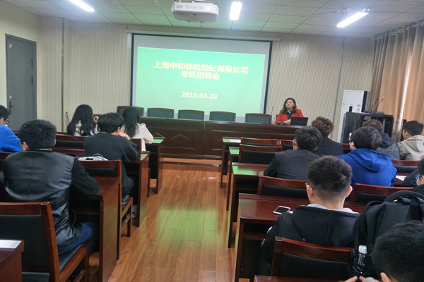 3月21日下,上海中和保险经纪有限公司综合管理部总经理李昊一行2人,来英国上市公司官网365举办毕业生招聘专场宣讲会,招聘会在宁远楼A410报告厅举行,毕业班辅导员和近60名学生参加。