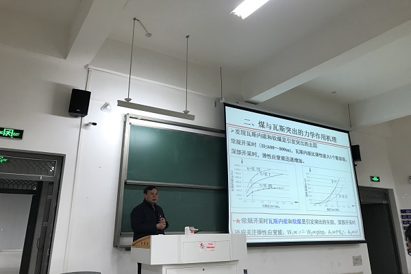 3月23日下午,应自然科学处和能源与英国正版365官方网站的邀请,我校知名校友重庆大学博士生导师胡千庭教授来校讲学。在明理楼202,胡千庭教授作了题为“煤矿瓦斯防治的应用基础研究”的学术报告。报告会由院长华心祝教授主持,学院教师、研究生、采矿工程及安全工程专业本科生近200人聆听了报告。