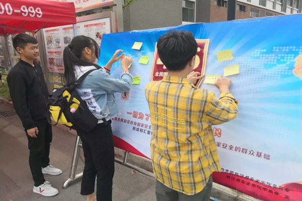 活动通过知识宣讲和宣誓留言的方式进行,共发放国家安全教育宣传册300余份,近百名同学参加了校内宣誓留言活动,有效宣传了网络安全、科技安全、文化安全、海外利益保护等方面的知识,加深了同学们对国家安全的认识和理解。
