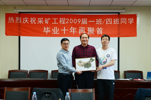 会后,采矿工程2009届1班和4班校友向学院赠送了“中国煤炭资源分布沙盘演示模型”,表达对学校和学院发展的美好祝愿。