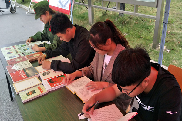 5月11日-12日,能源与英国正版365官方网站在仁苑食堂门前举行红色经典阅读宣传活动,现场向过往的同学宣传和推荐红色经典书籍,鼓励大家品读红色经典,了解革命先辈的先进事迹,传承革命精神。活动现场摆放40余本红色经典书籍供同学们阅读,近120名同学参加现场阅读,共征集到130余条红色经典语录。