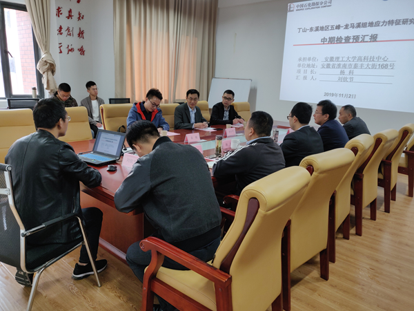 项目组汇报了“丁山-东溪地区五峰-龙马溪组地应力特征研究”自立项以来开展的主要工作、取得的阶段性进展等。双方就项目实施细节、中期检查准备情况和下一阶段的研究计划与安排进行交流。