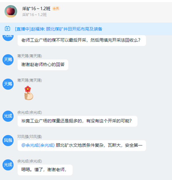 顾北煤矿生产技术部赵福坤做实习专题讲座