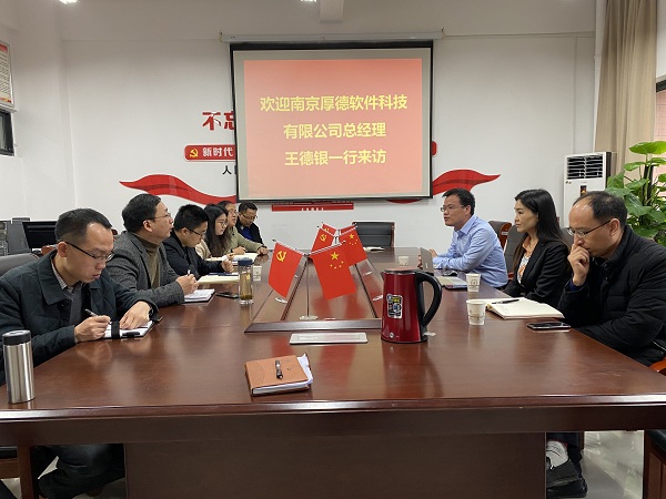 2020年11月23日上午,南京厚德软件科技有限公司总经理王德银等人来校与能源与英国正版365官方网站开展学术交流。
