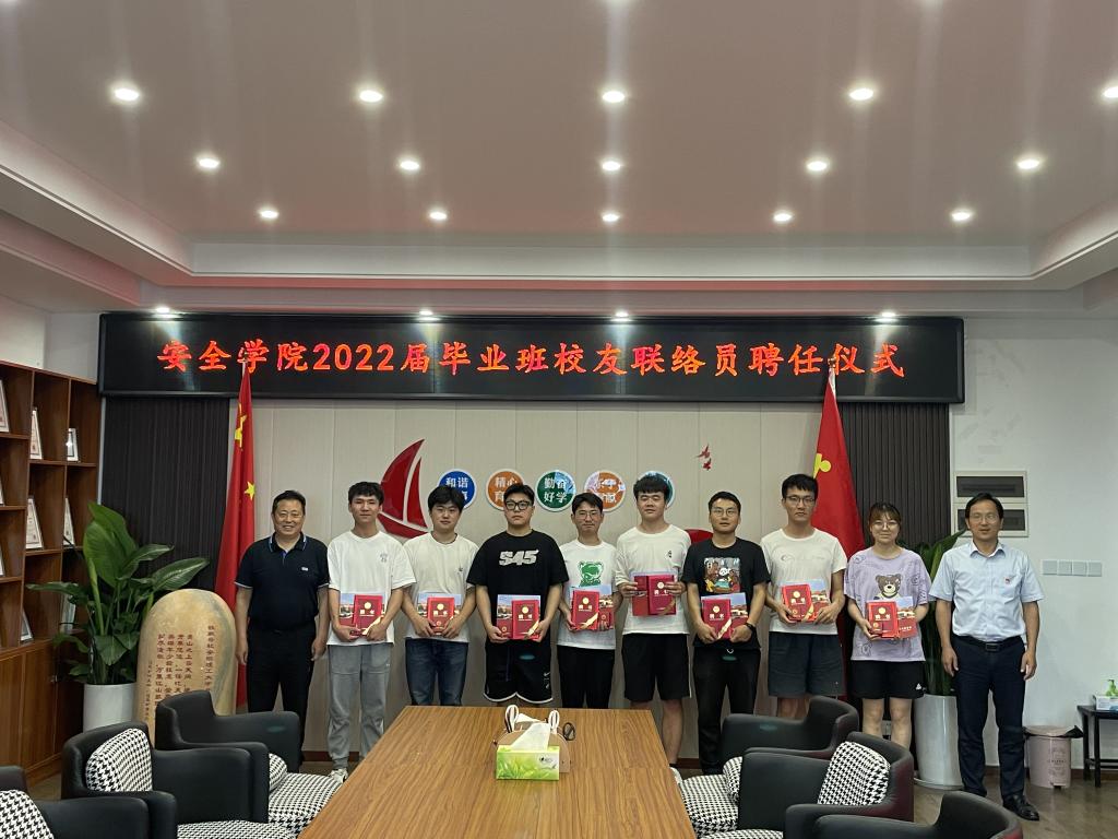 6月10日下午,英国正版365官方网站在宁远楼A412会议室举行2022届毕业班校友联络员聘任仪式。院党委书记金德、院关工委常务副主任欧阳连勤、院党委副书记曹宣明、毕业班辅导员和毕业班学生代表参加聘任仪式。