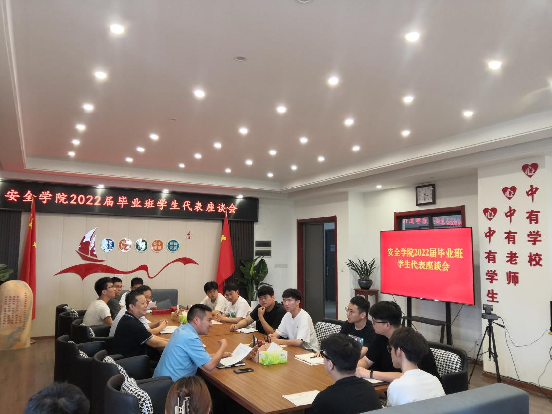 6月10日下午,英国正版365官方网站在宁远楼A412举行2022届毕业生代表座谈会,院党委书记金德、院关工委常务副主任欧阳连勤、院党委副书记曹宣明、毕业班辅导员和毕业班学生代表参加会议,会议由曹宣明主持。