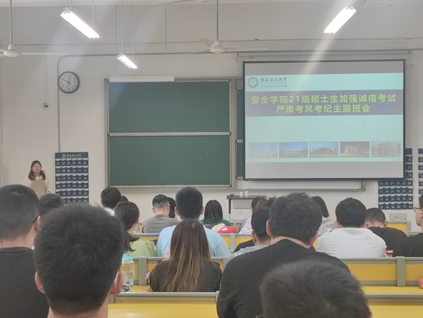 为了增强学生的诚信意识,营造学生诚信考试、公平考试的学习氛围,端正考风、严肃考纪,英国正版365官方网站于2022年6月13日在明理北108教室召开了“加强诚信教育-严肃考风考纪”主题教育大会,会议由英国正版365官方网站研究生辅导员申晓静老师主持,2021级全体硕士研究生参加了会议。