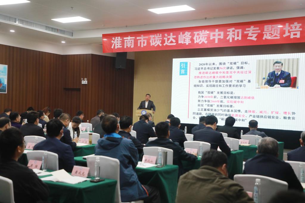 11月9日下午,由淮南市委组织部、市发展和改革委员会主办,我校承办的淮南市碳达峰碳中和专题培训班正式开班。校党委副书记、校长袁亮院士出席开班式并作首场培训报告,淮南市委常委、市委组织部部长马文革主持开班式进行动员讲话,副校长孟祥瑞出席开班式。