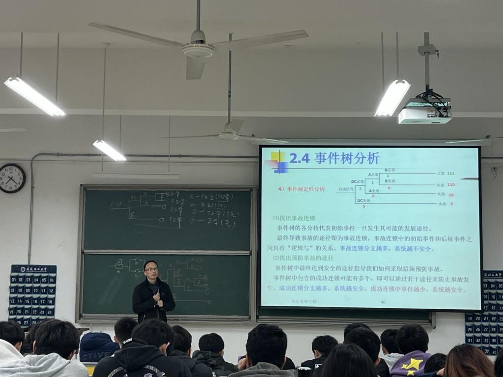 11月22日,安全工程系周亮作了课程《安全系统工程》的示范教学。周亮老师以挖野菜扔烟头是否会导致火灾为例,讲述了事件树分析法以及预防事故的途径,课堂以提问式、启发式、趣味式等方式引导学生加深对知识点的理解,并结合安全工程实例,融入课程思政,在传授专业知识的同时,培养同学们的职业素养。