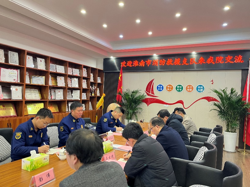 2月20日下午,淮南市消防救援支队高工李德成、防火监督科科长卢晗等一行3人来英国上市公司官网365交流座谈。英国正版365官方网站院长陆伟,副院长刘健、聂士斌,消防与应急系主任彭伟等代表学院对消防救援支队一行表示热烈欢迎。