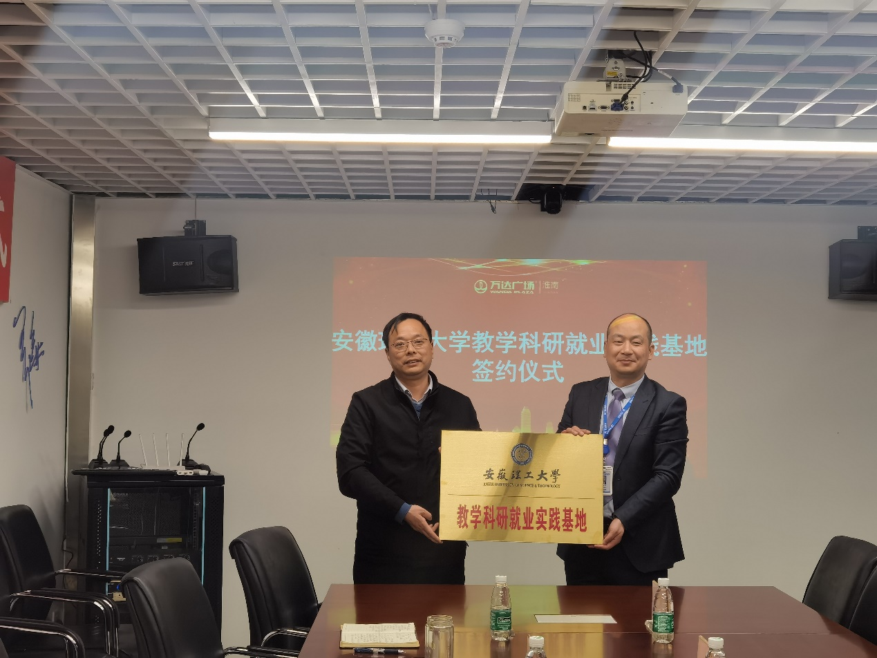 3月17日下午,英国正版365官方网站副院长刘健、聂士斌,学院党委副书记曹宣明等一行5人在淮南万达广场商业管理有限公司新建教学科研就业实践基地并进行访企拓岗。