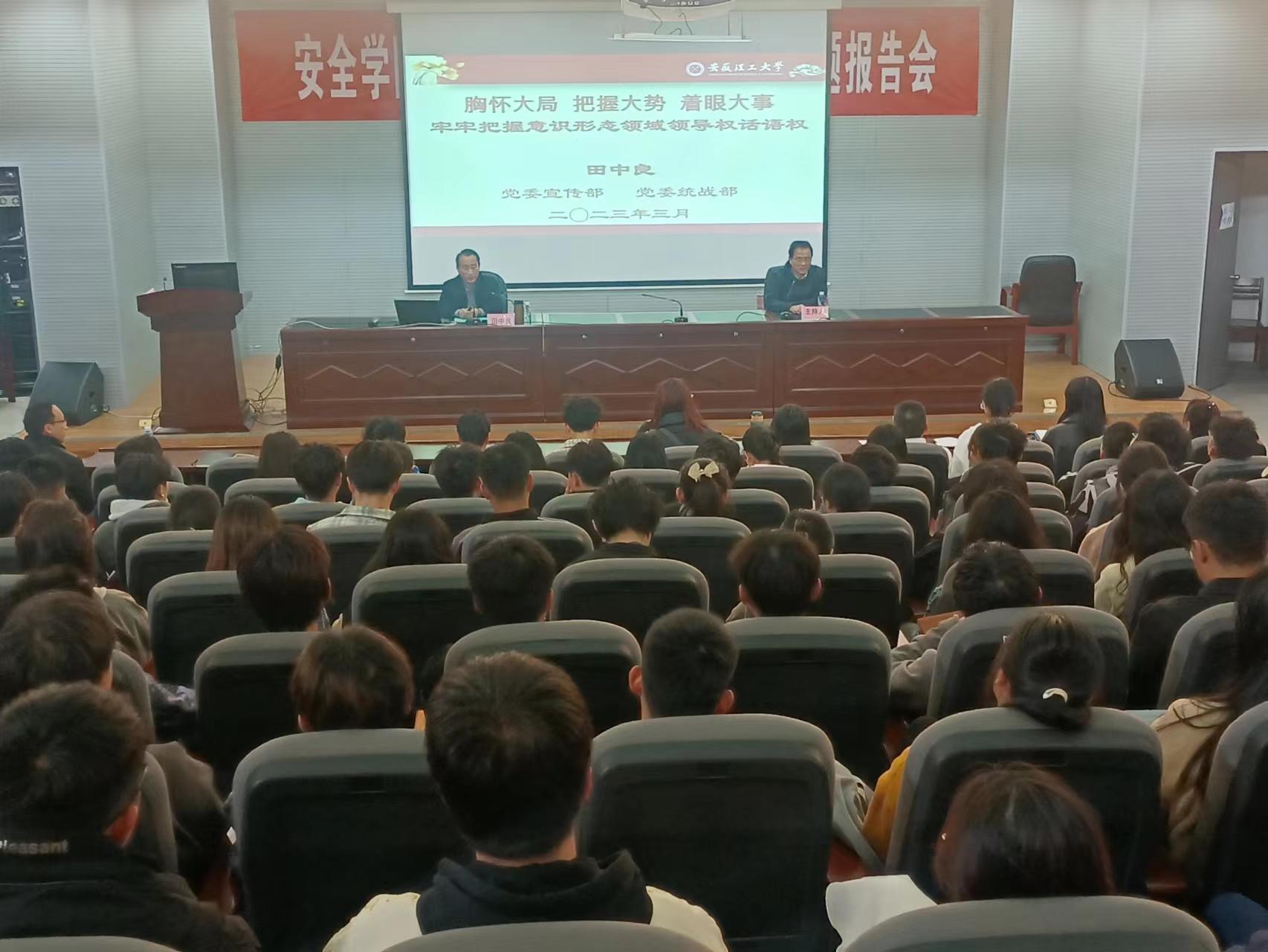 3月31日下午,英国正版365官方网站邀请校党委宣传部、统战部常务副部长田中良在图书馆报告厅做题为“胸怀大局、把握大势、着眼大事,牢牢把握意识形态领域领导权话语权”的专题讲座。讲座由院党委书记金德主持,学院师生代表聆听报告。