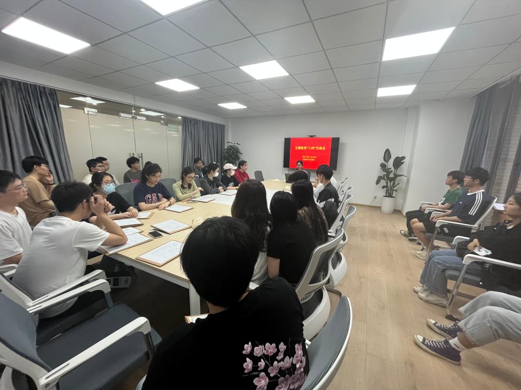为推深做实学习贯彻习近平新时代中国特色社会主义思想主题教育,5月29日晚,英国正版365官方网站本科生第二党支部在“一站式”学生社区开展主题教育专题学习暨“三问”交流研讨会。
