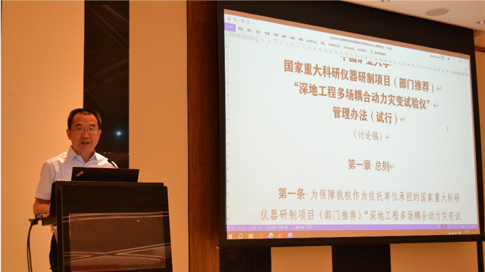 2023年6月5日,由安徽理工大学党委副书记、校长袁亮院士主持的国家自然科学基金委员会国家重大科研仪器研制项目(部门推荐)“深地工程多场耦合动力灾变试验仪”内部启动会暨实施方案论证会在合肥顺利召开,项目依托单位中国矿业大学,参研单位山东大学、安徽理工大学、中国科学院声学研究所和中国地震局地质研究所的70余位研究骨干参加了本次会议,会议由项目负责人袁亮院士主持。