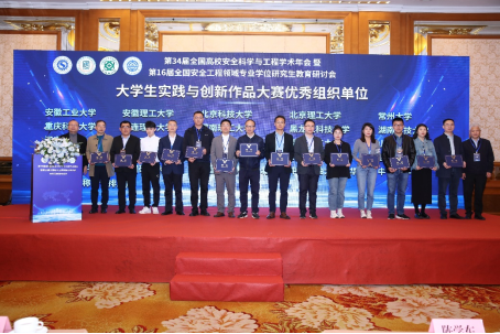 会议最后,进行了第10届全国高校安全科学与工程大学生实践与创新作品大赛颁奖仪式。英国正版365官方网站获第10届全国高校安全科学与工程大学生实践与创新作品大赛优秀组织单位,学院1名教师获优秀指导教师,组织参赛的作品中获一等奖作品1项,二等奖作品1项,三等奖作品2项。