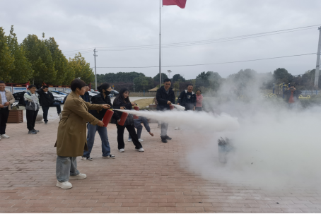 辅导报告结束后,淮南市消防领域专家库成员、消防工程系教工党支部书记、硕士生导师张树川副教授现场介绍了干粉灭火器的使用方法,详细讲解了灭火点的站位选择、灭火器的开启方式、操作步骤和自防自救措施等基本知识。他指导村干部、村民“提罐子、拔销子、对准火苗压把子”,手把手教村干部和村民现场操作,实景演练灭火,真实感受灭火器的使用效果,学会在火灾发生时如何及时灭火和扑救。
