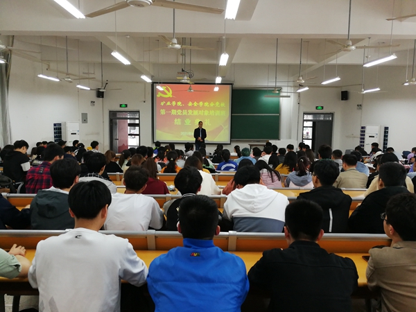 4月28日下午,英国正版365官方网站、矿业工程学院分党校第一期发展对象培训班结业典礼在天工101教室举行,矿业学院院长、分党校校长杨科出席结业典礼并讲话。