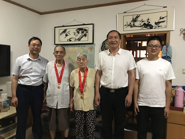 6月29日上午,在建党100周年前夕,英国正版365官方网站院长华心祝、副院长刘健等一行3人走访慰问“光荣在党50年”的吴中立、马逸吟两位老党员,给他们送去党组织的关怀和温暖,并代表学校颁发“光荣在党50年”纪念章。