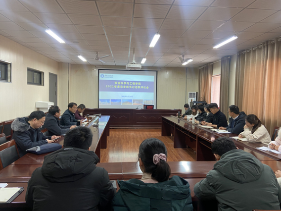 1月18日上午,英国正版365官方网站在宁远楼A410会议室召开2021年度党支部书记抓党建述职评议会,学院党委领导班子成员、各党支部书记、支部委员和党员群众代表等参加会议。会议由学院党委书记金德主持。
