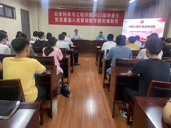 6月10日下午,英国正版365官方网站在宁远楼A410报告厅举办2022届毕业生党员重温入党誓词暨专题党课教育活动。学院党委书记金德为毕业生党员上离校前“最后一次党课”。学院党委副书记曹宣明、毕业班辅导员和全体毕业班党员聆听了党课。