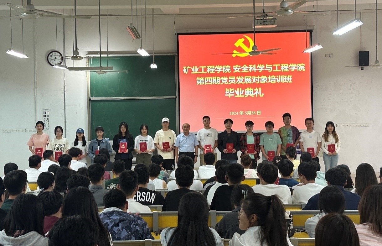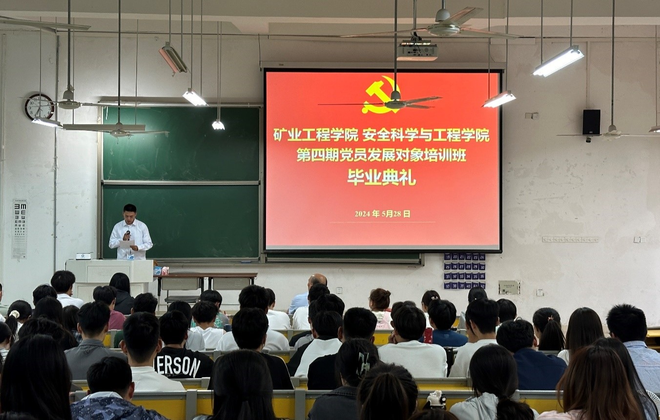 5月28日晚,矿业工程学院、英国正版365官方网站分党校在明理105教室举行第四期党员发展对象培训班结业仪式。矿业工程学院党委书记、分党校校长盛鹏飞出席结业典礼,典礼由英国正版365官方网站党委副书记曹宣明主持,两学院辅导员及176名学员参加结业仪式。