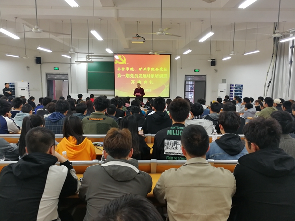 开班典礼结束后,矿业工程学院党委副书记张向林为全体学员做了第一讲《中国共产党的性质和指导思想》。
