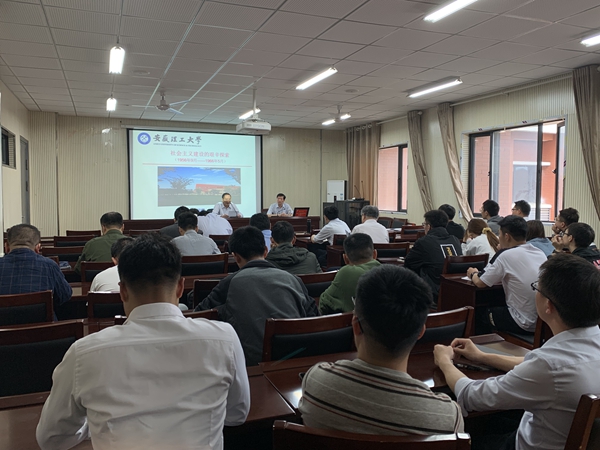 5月13日上午,英国正版365官方网站在宁远楼A410报告厅举办百川大讲堂,邀请校党史学习教育宣讲团团长、马克思主义学院院长孙功教授作题为《中国建设社会主义道路的艰辛探索》的党史学习教育辅导报告。报告会由学院党委书记华心祝主持。学院80余名师生党员聆听了报告。