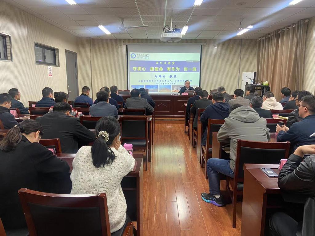 刘泽功教授首先从党的二十大报告切题,阐述了自己学习党的二十大报告中关于文化、教育、人才重要论述的理解,引导全院教师积极弘扬传承中国传统文化,强化科教兴国和人才是推动高质量发展的第一资源认识,深度思考“为谁培养人、怎么培养人、培养什么样的人”。之后又引用了大量名人案例和感人故事,阐述了作为一名高校教师如何提高自身素养,引导全院教师自觉加强师德修养,传承践行“学高为师、德高为范”要求,牢记为党育人、为国育才使命,努力成长为一名有理想信念、道德情操、扎实学识、仁爱之心的“四有”好老师。最后面对学校“双一流”创建新征程,希望学院领导班子和全院教师一定要坚守初心、勇担使命、主动作为、争创一流。