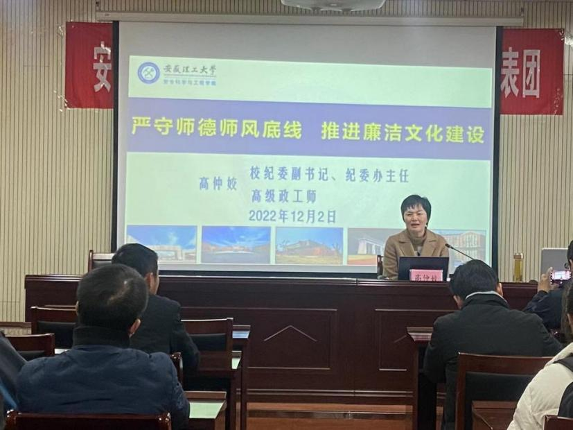 高仲姣首先从不敢腐、不能腐、不想腐的逻辑内涵切入,阐述了新时代加强高校廉洁文化建设的重大意义;解读了学校新出台的《关于加强新时代廉洁文化建设的若干举措》以及《新时代高校教师职业行为十项准则》《中国共产党廉洁自律准则》《中国共产党纪律处分条例》等相关制度文件精神与法律规范;又结合一系列典型案例,深入剖析失德失范的四个方面原因与五个方面对策,并从职业发展的角度引导大家正确认识“四有”好老师的深刻内涵与时代要求;最后也建议学院进一步加强政策法规的宣传教育,从全面从严治党的高度加强廉洁文化建设,让全院师生懂政策、知准则、存敬畏、守底线,造营更加风清气正的育人环境。