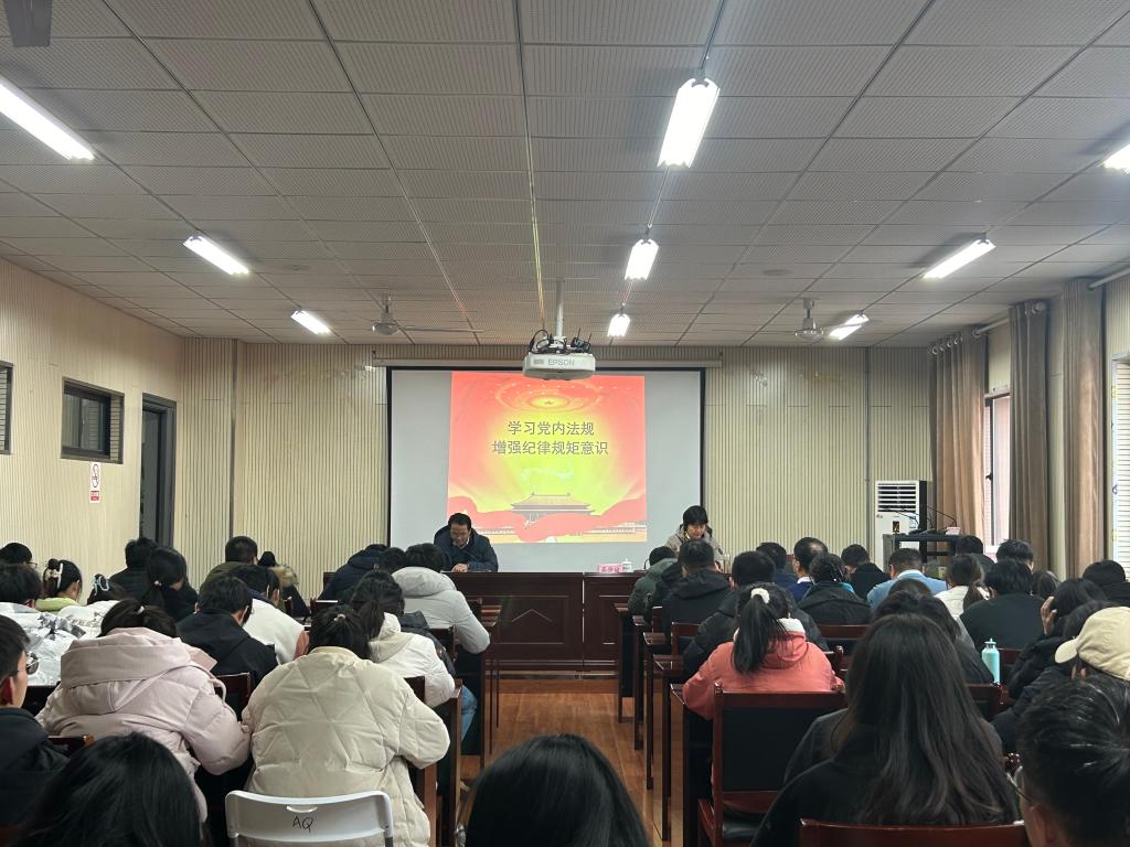 12月26日下午,英国正版365官方网站邀请校纪委副书记、纪委办主任高仲姣,在宁远楼A410报告厅作“学习党内法规 增强纪律规矩意识”的专题辅导报告。报告会由学院党委书记金德主持。