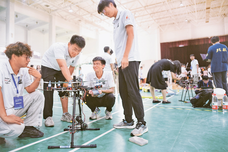 社会主义建设者和接班人必须全面发展。形式多样的学术实践竞赛,对培养大学生科学精神、全面发展发挥了积极作用。8月17日至18日,2024中国大学生飞行器设计创新大赛中部赛区选拔赛在天津举行。图为参赛选手调试飞行器。 中新社记者 佟郁/摄