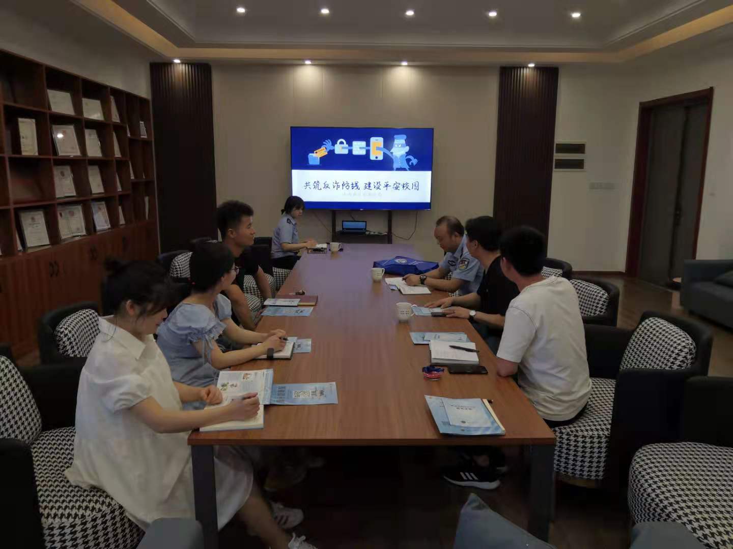 6月30日上午,淮南市公安局山南分局情指中心主任冯青松、科员潘静来英国上市公司官网365对接“共筑反诈防线、建设平安校园”防电信诈骗宣传活动。校保卫处校园秩序管理中心科李虎科长、学院全体辅导员参加。