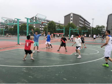 随着裁判一声哨响,比赛在轻松友好的氛围中开始。比赛采用四节制,学生代表队在前两节以充沛的体力、犀利的突破、精准的投射能力迅速拉开了比分。后两节学生代表队所有队员轮流上场,也放松了对老师们的防守,教师代表队逐渐拉近比分,并最终学生代表队以44:42赢得比赛。