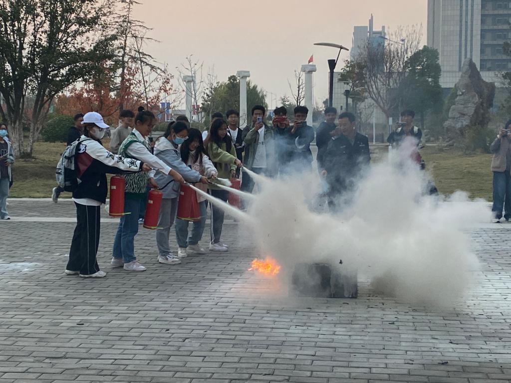 11月10日下午,随着火灾警报响起,工作人员按照演练方案引导学生快速疏散,学生按照要求弯腰屈身,用毛巾、衣、袖口等掩住口鼻,有序、迅速地撤离到安全地点,并清点人数。保卫处彭广峰老师向学生讲解了灭火器的操作方法,现场示范了干粉灭火器的使用操作,师生们现场参与消防器材灭火操作演练。