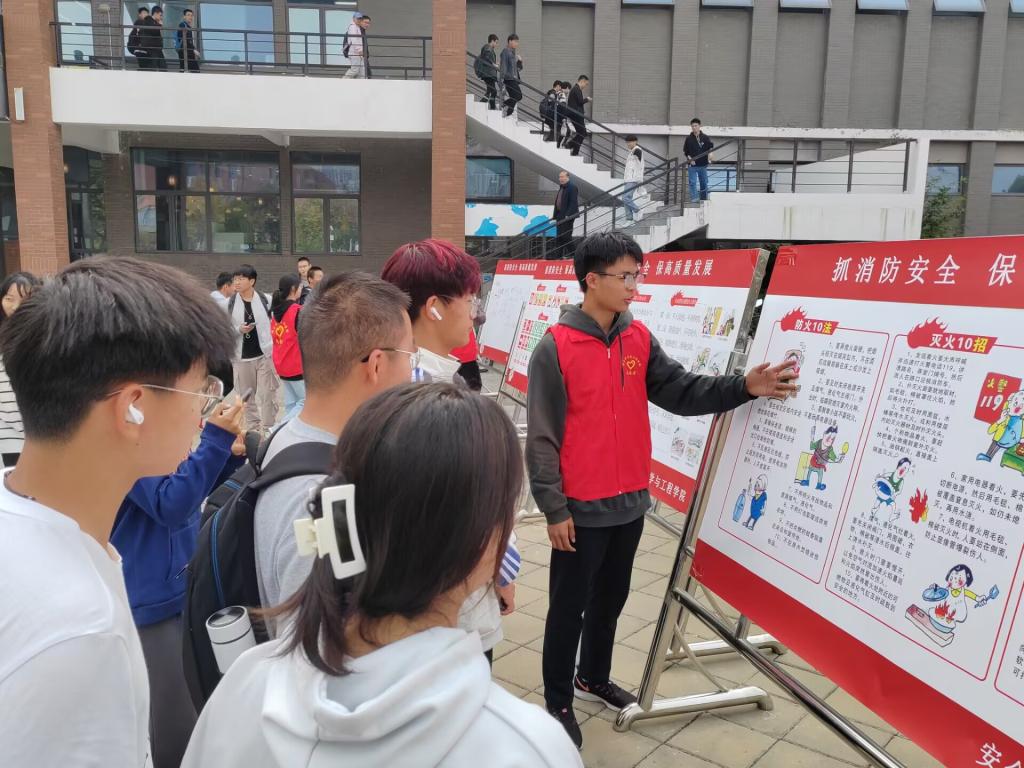 11月9日消防日当天,为营造全体师生参与消防的良好氛围,学院围绕“抓消防安全,保高质量发展”活动主题,图文并茂制作宣传展板,在宁远楼广场和仁苑食堂向师生宣传电、燃气、家庭、电动车安全、火灾逃生自救、应急救援等相关消防安全知识,活动期间还举行了学生签名活动。