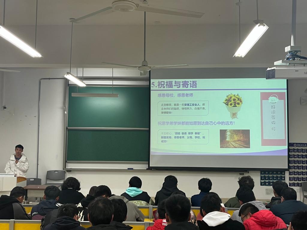 交流会上,三位同学从自身学习经历出发,围绕专业学习、社会实践、学科竞赛、志愿服务等方面开展分享。推免至清华大学的徐毅豪同学讲述了自己的大学生活经历、学习规划、科研竞赛经验以及丰富的课外生活,勉励学弟学妹要勤奋努力,自强不息,刻苦学习。推免至中国科学技术大学的杨涵同学讲述了自己的保研经验、学习经验以及参加竞赛的经历,希望学弟学妹要珍惜时间抓住当下,不让将来的自己后悔,努力成为自己想成为的人。推免至重庆大学的陈尹明同学讲述了自己的竞赛经历、科研经验、学习工作以及丰富的课外活动情况,勉励学弟学妹跳出舒适的生活圈,勤奋学习,努力实践。