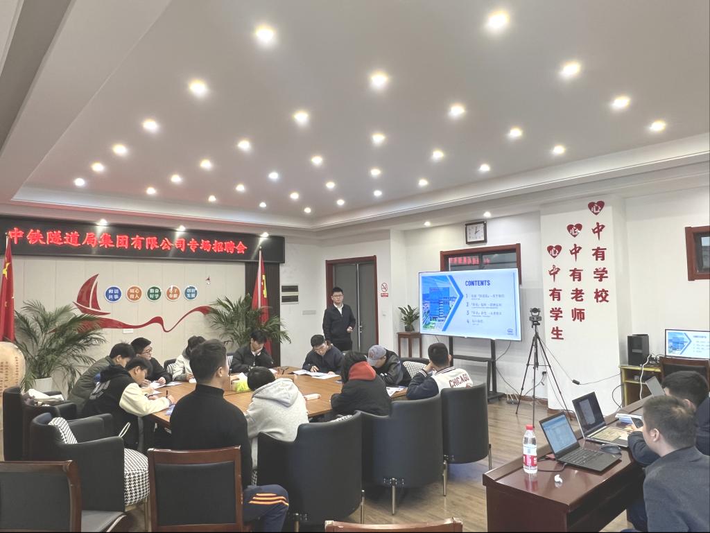 3月2日下午,英国正版365官方网站在宁远楼A412会议室组织召开中铁隧道局专场招聘宣讲会。院党委副书记曹宣明、毕业班辅导员、2023届20余名毕业生参加招聘会。