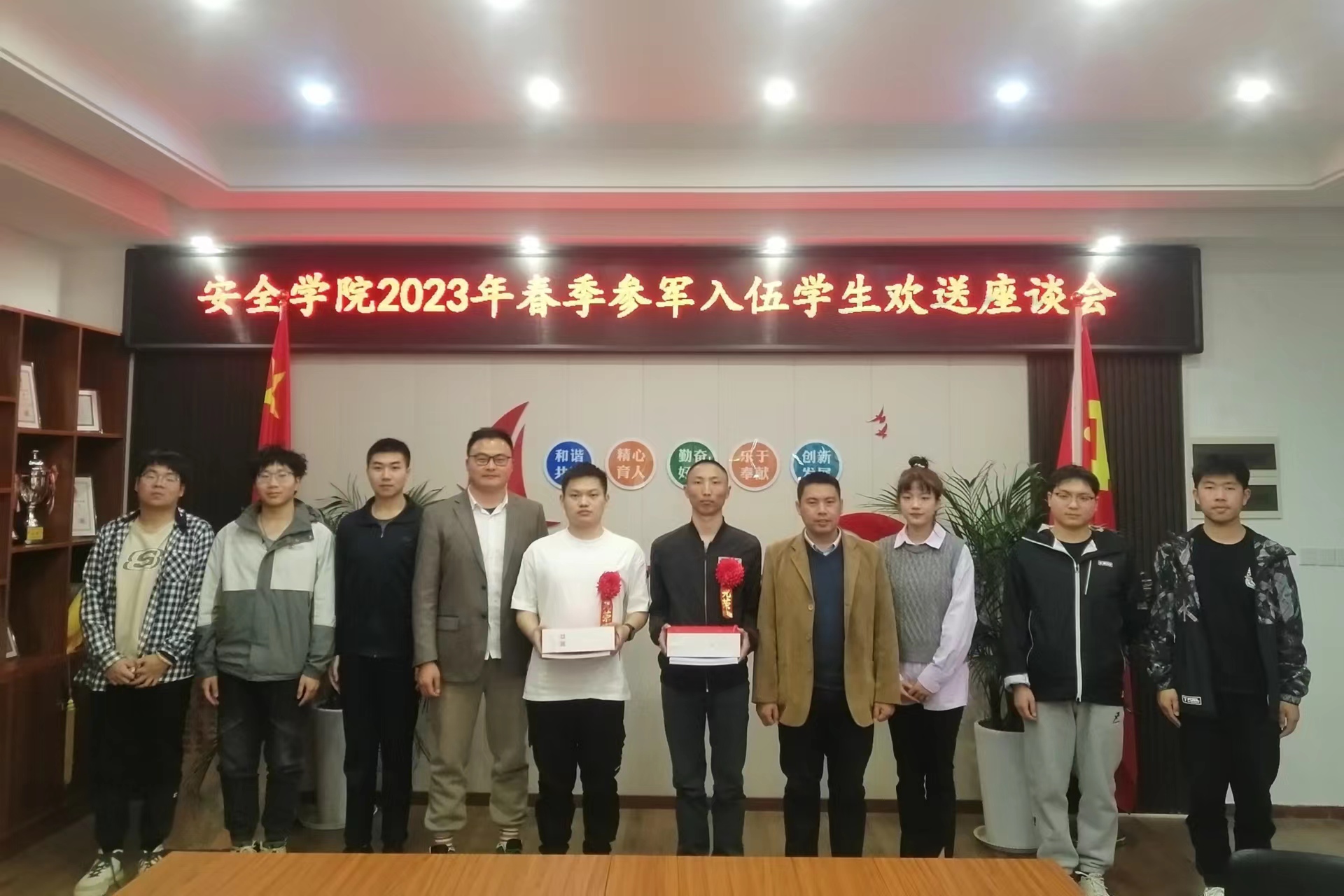 3月6日下午,英国正版365官方网站2023年春季参军入伍学生欢送座谈会在宁远楼412召开。学院分管学生工作负责人、辅导员、退役复学“老兵”代表以及学生代表参加了欢送座谈会。