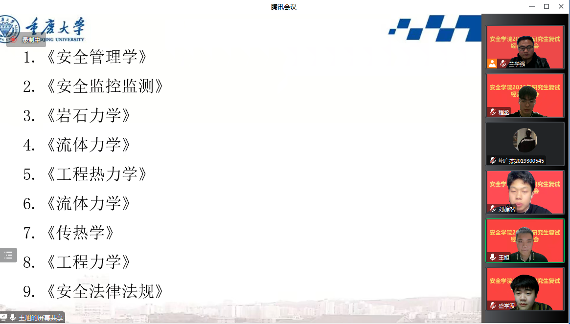 交流会上,就读于重庆大学的王旭从复试内容、应对技巧、注意事项等方面展开,结合实际案例向同学们分享了复试各个环节的具体内容。就读于中国矿业大学的杨维昊结合自身考研复试经验,围绕心态调整、复试内容、复试方法、复试细节等方面进行分享。就读于武汉理工大学的盛学波从面试流程、回答问题技巧和准备回答内容等环节依次进行经验分享。其他与会优秀毕业生也都从各自院校的复试要求、复试内容、面试技巧等方面进行分享,同时鼓励学弟学妹们要调整心态,坚定信心,以健康的心态积极面对复试,预祝他们能够旗开得胜,一战成硕。