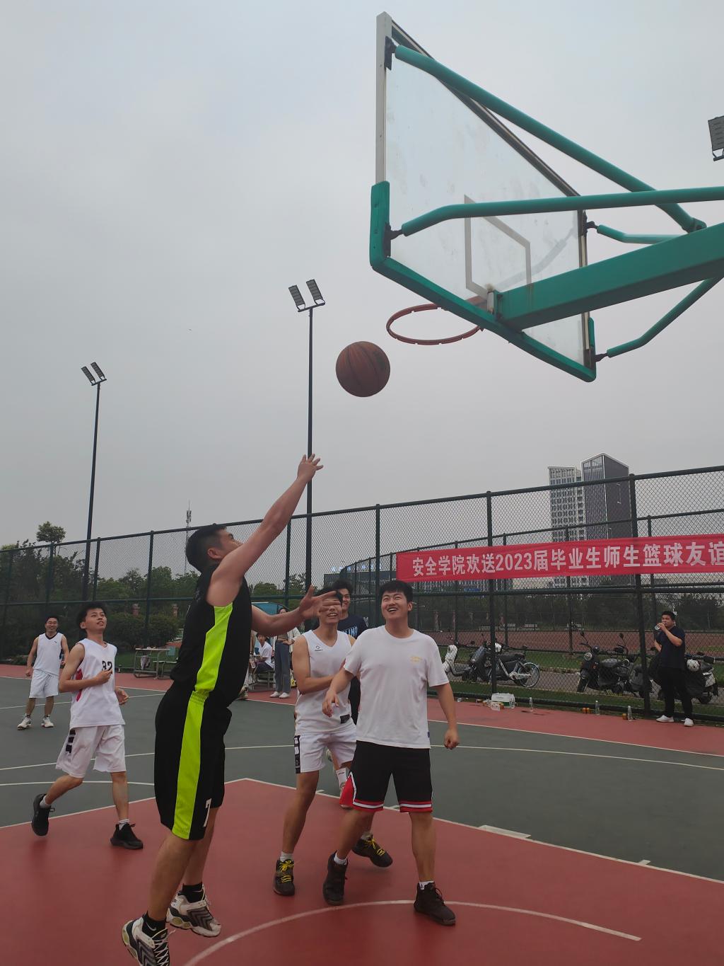 6月3日下午,英国正版365官方网站欢送2023届毕业生师生篮球友谊赛在仁爱篮球场举行,经过激烈角逐,最终教职工队略胜一筹。