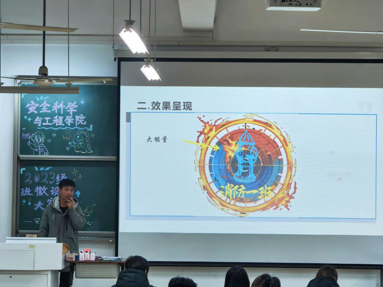 比赛阶段,各班汇报人都拿出最好的状态解说本班的班徽,生动地诠释了班徽设计的寓意和灵感来源。蓝色和盾牌代表着安全,飞扬的丝带象征着青春,古老的南十字星被当作信念、力量和希望的象征……在场的观众不仅欣赏到了各班级出色的设计成果,还深刻感受到了同学们对班级体的热爱与自豪。经过激烈的角逐,安全23-7班、消防23-1班荣获一等奖,安全23-4班、安全23-1班、安全23-6班获得二等奖,安全23-5班、安全23-2班、安全23-3班、安全23-8班获得三等奖。