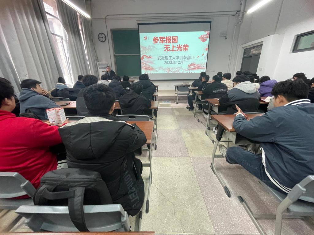 为深入学习贯彻习近平强军思想,进一步落实征兵工作相关要求,12月27日中午,英国正版365官方网站邀请计算机科学与工程学院党委副书记刘中廷和校武装部王广义老师在天工北105作征兵工作政策宣讲。学院学生工作负责人、辅导员以及2024届毕业生50余人参加宣讲会。