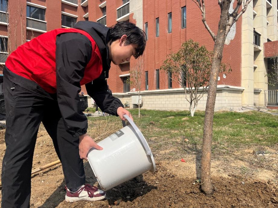 人勤春来早,植绿正当时。3月12日,学院雷锋志愿者们在宁远楼周边组织开展了植树活动。扛苗散苗、挥锹铲土、填树入坑、扶苗踏实,随后堆围堰、培新土、提桶浇水。活动现场人头攒动,呈现出一派热火朝天的劳动景象,志愿者们充分发扬团结、互助、友爱、进步的精神,展现当代团员青年良好的精神风貌。