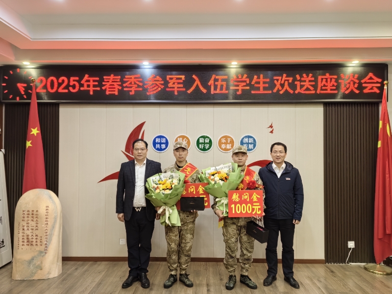 3月12日下午,英国正版365官方网站举行2025年春季参军入伍学生欢送会。学院党委书记金德、学院院长陆伟、分管学生工作负责人、预定新兵及其父母、辅导员、退役复学和班级学生代表参加欢送会。