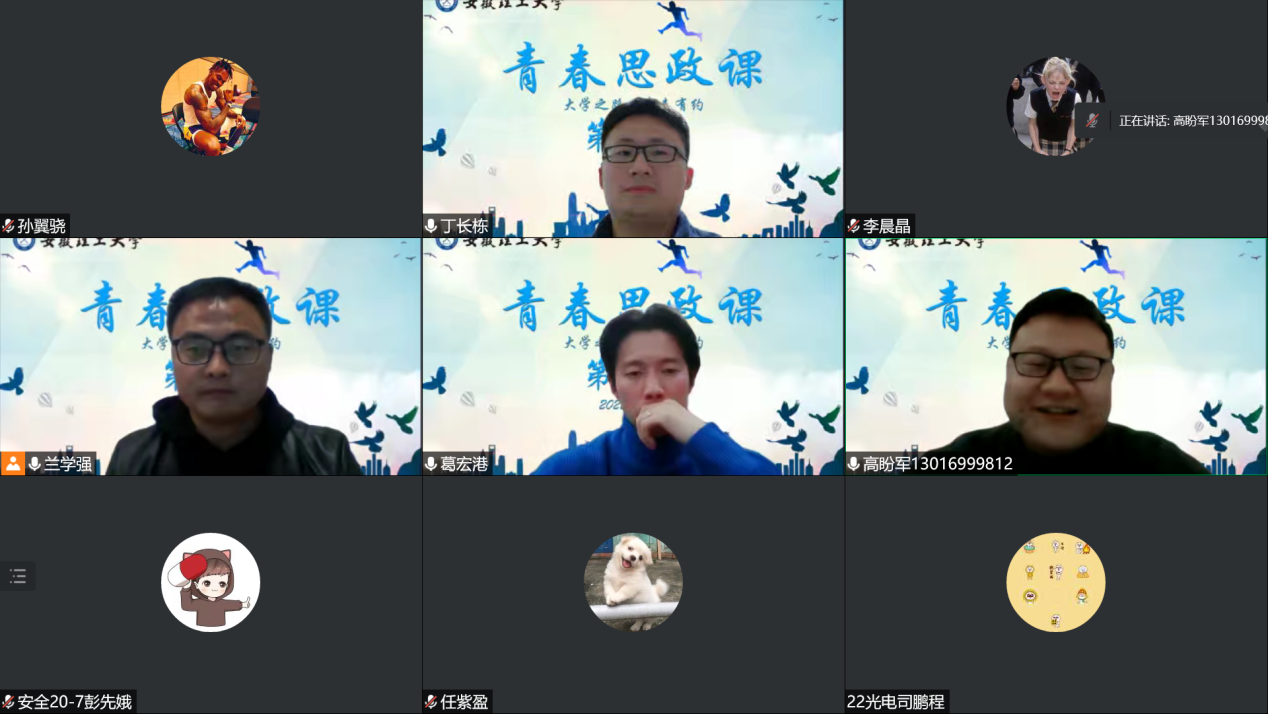 活动以“大学之路、青春有约”为主题,三名校友通过访谈的形式分享了大学成长和创业就业路上的心路历程。高盼军向同学们讲述了自己在安理本科和研究生期间的创新创业经验,结合自己大学期间参加科技创新比赛及后期的创业经历中的“小故事”,激励学弟学妹们要提早确定目标,脚踏实地,主动学习,不断挑战自我,打造自己的精彩人生。丁长栋结合自己的成长经历,建议同学们在大学期间一定要提早确定目标,重视基础课的学习,强化专业课的学习,加强英语的学习,主动涉猎专业外的知识,同时结合自己读博期间的科研经历,激励大家敢于面对困难、敢于面对挫折,每一次成功克服困难的经验都是对自己能力的快速提升。葛宏港以人的价值为出发点,提出当代大学生要实现个人价值与社会价值相结合,分享自己的志愿服务经历,尤其是两次捐献造血干细胞的故事,勉励同学们要用爱心关怀世界,主动践行奉献精神,用行动温暖人心,增值自我价值。