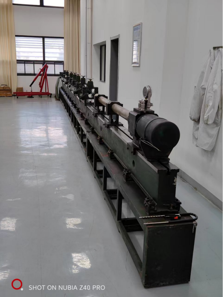 整套平台包括:高压储气发射仓、撞击杆、紫铜整形片、入射杆、瞬态光学测速仪、透射杆、吸收杆、缓冲器、半导体应变片、电阻应变片、超动态应变仪、电脑处理系统。选用撞击杆、入射杆、透射杆直径均为75mm,长度分别为0.4m、4m和2.5m,材质均为高强度培杆,密度为2700kg/m3,弹性模量为70GPa,纵波波速为5190m/s,应变片使用的是电阻应变片。