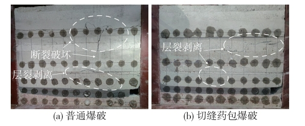 针对厚硬顶板导致高矿压、高位钻孔瓦斯抽采效果不佳的问题,通过爆破相似模拟试验与理论分析相结合的研究方法,对普通爆破与切缝药包爆破载荷作用下物模的宏观裂纹分布模式、损伤特征以及应变和应力的演化规律进行分析,对爆破弱化半径进行定量计算。结果表明:模型表面爆破裂纹分布差异显著;使用损伤度(D)及波降率(η)对岩石爆破损伤情况进行定量表征,发现切缝药包爆破比普通爆破造成的有效损伤范围更大;动态应变信号分析表明,切缝方向上应力波波阵面速度更快、强度更高,岩层受到的爆炸动载更强,测点的峰值应变及峰值应力均显著大于普通爆破。理论计算表明切缝药包爆破弱化半径(21.8 m)大于普通爆破(16.5 m),使用切缝药包超前预裂爆破厚硬顶板可以保障巷道稳定性,并且更具经济效益。研究成果为解决厚硬顶板条件下的矿压与上隅角瓦斯综合防治问题有着一定的指导意义。