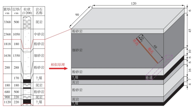 ⅡN7224N工作面岩性与模型示意(单位:cm)