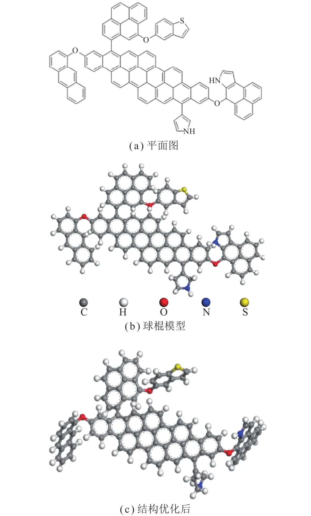 3S,煤分子模型的桥碳比为0.61,其与