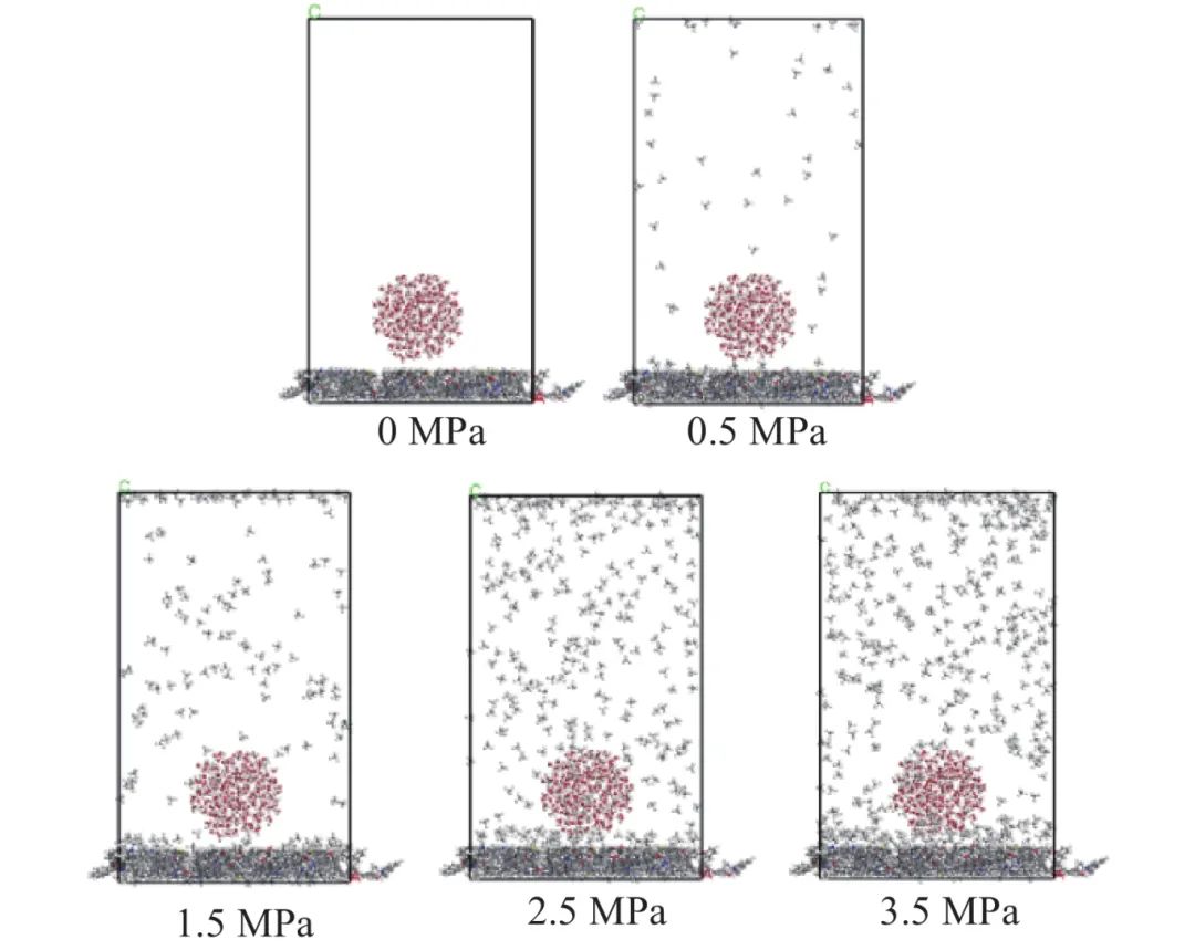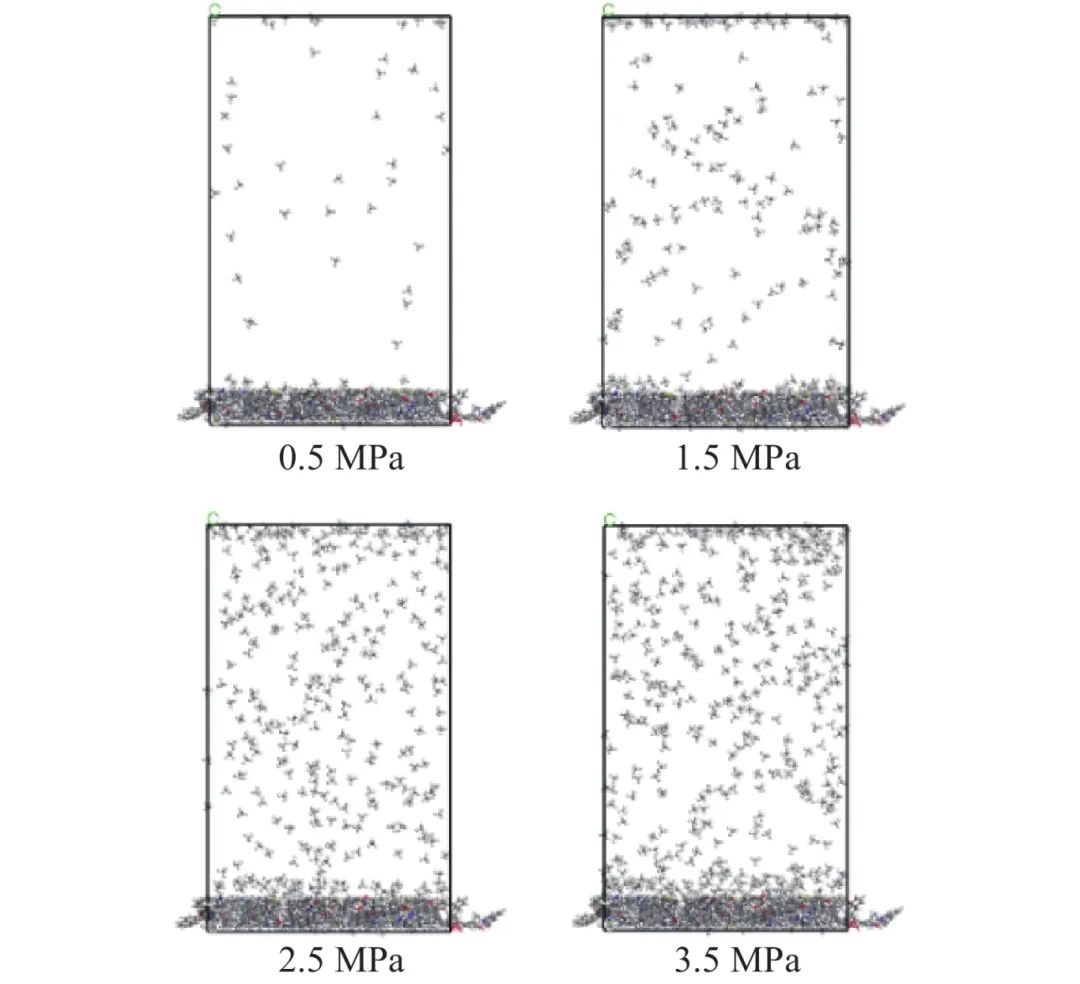 图 9 不同瓦斯压力条件下分子吸附构型